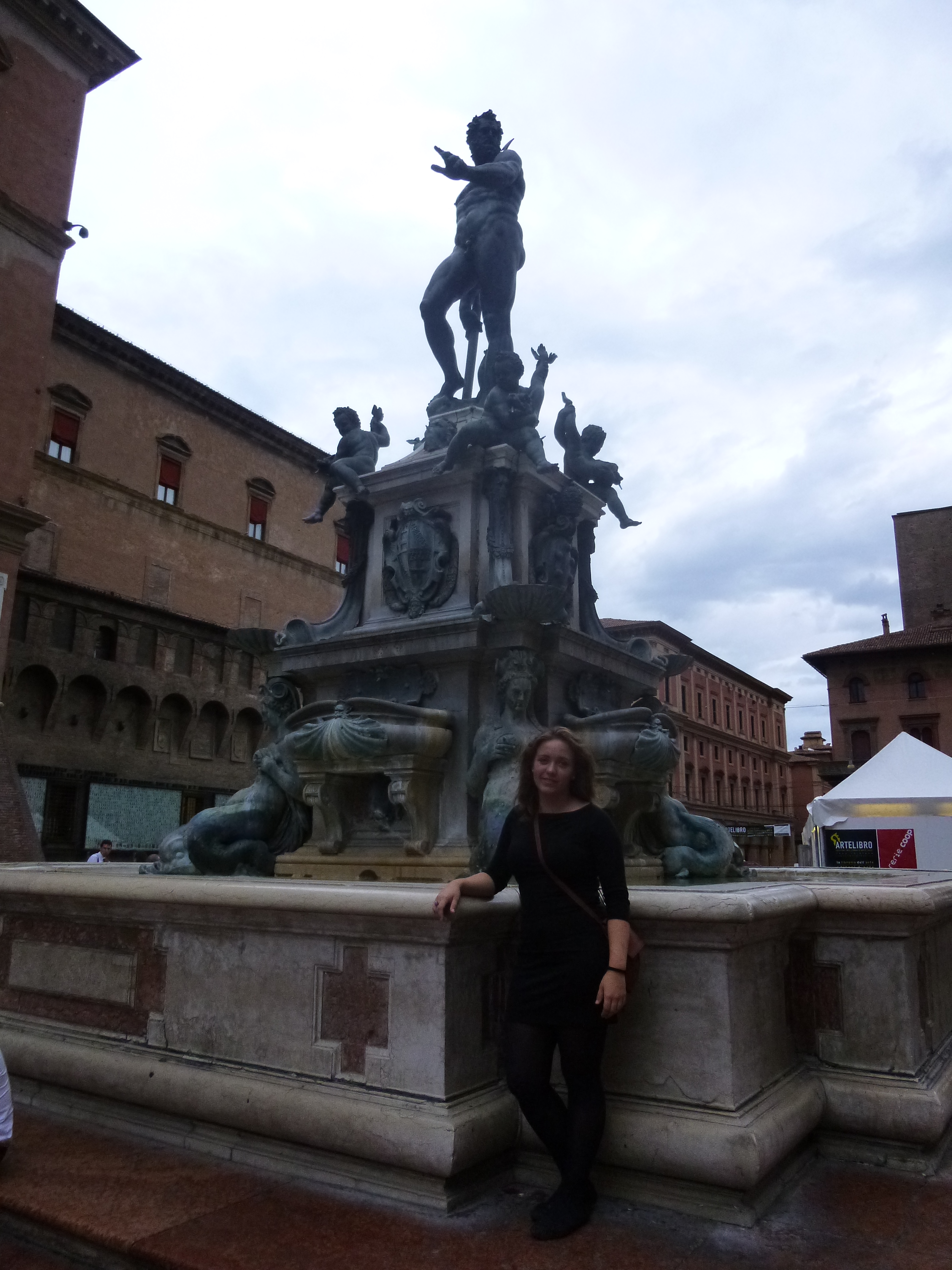 My walk from the apartment took me beside Porta San Donato, which was a Roman gate to the city at one point in time. Then I walked along Via Zamboni which leads into the heart of the university community and to Piazza Maggiore in the centre. In the Piazza stands the Basilica di San Petronio and the Palazzo Podesta. The basilica was intended to be larger than San Pietro’s in Rome but it was never completed. If you go see it for yourself you will notice that part of the structure is covered in white stone and the rest is red brick. The Piazza also holds the Fountain of Neptune, which was built in the end by Bandinelli.