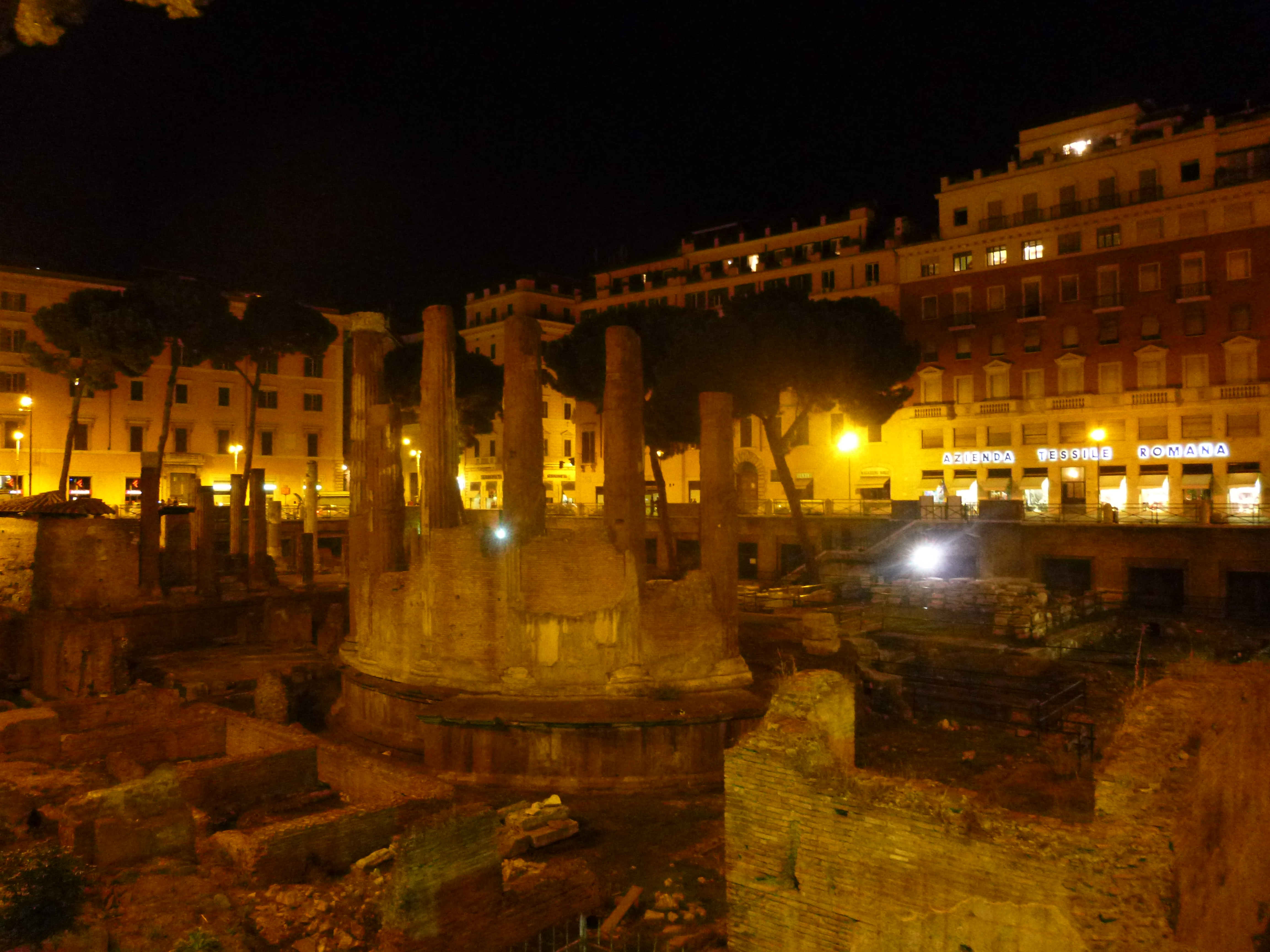 So Giuseppe spoke very good English, and he was a fantastic host and guide through the city. My first night there he took me on his scooter to the center to see the Fontana di Trevi because it is nicer at night with all the lights. I have to admit it is very magical at night, but way too many tourists. Apparently it is best to go see it around 2 or 3 in the morning because there is no one there and you can really enjoy the atmosphere. But the fountain really is beautiful, the detail of the entire structure is magnificent. Then we walked around a bit to see the surrounding area such as Piazza Venezia, Piazza del Parlamento, Area Sacra Argentina, and Campo de’ Fiori. I will, of course, give you some background on all of these places. Piazza Venezia is in the centre of the city and is named after Cardinal Venezia and the Palazzo Venezia used to be the embassy of the Republic of Venice back in the day. In this ‘square’ there is a very large, white, colossal building on the top of a hill that has two flames constantly watched by two guards. These flames are always burning and are a tribute to an unknown soldier who died in one of the world wars, I wish I could remember which one now. But it is a symbol in Rome. OK the Piazza del Parlamento I think is self-explanatory. It was built in the 17th century and is now used by the government for their daily activities. The Area Sacra Argentina is actually really cool. It is the remnants of a part of the old Roman city but now has hundreds of cats living in it. There is an organization that feeds and takes care of cats in the monument, and when visiting it you can see the cats sitting around watching you. And lastly, the Campo de’ Fiori is a square lined with cafes and in the centre the statue of a philosopher named Giordano Bruno who insisted to the Church that they should look into science and trust it more than they did. He was burned alive in this square and the statue of him is there to honour him.