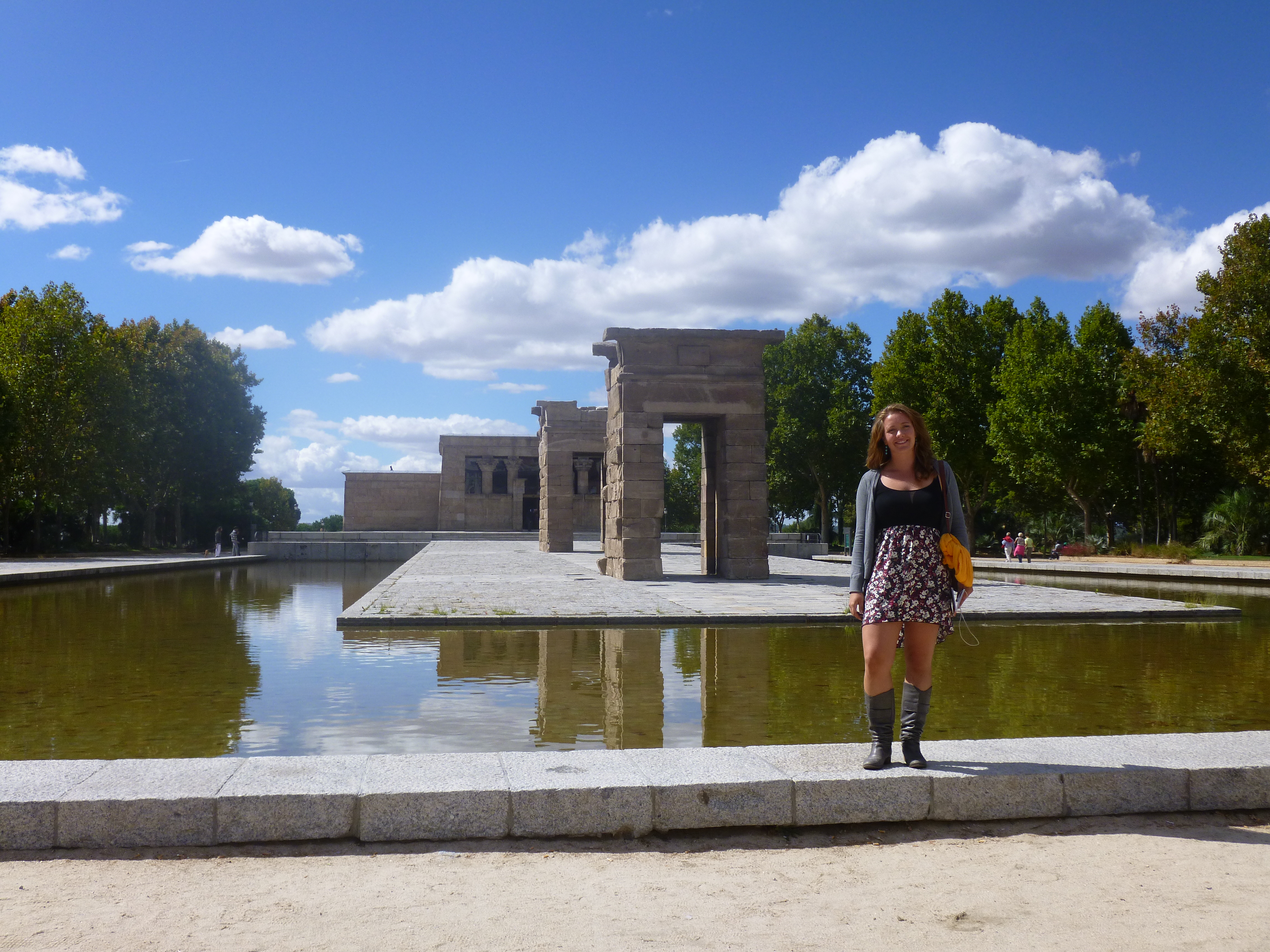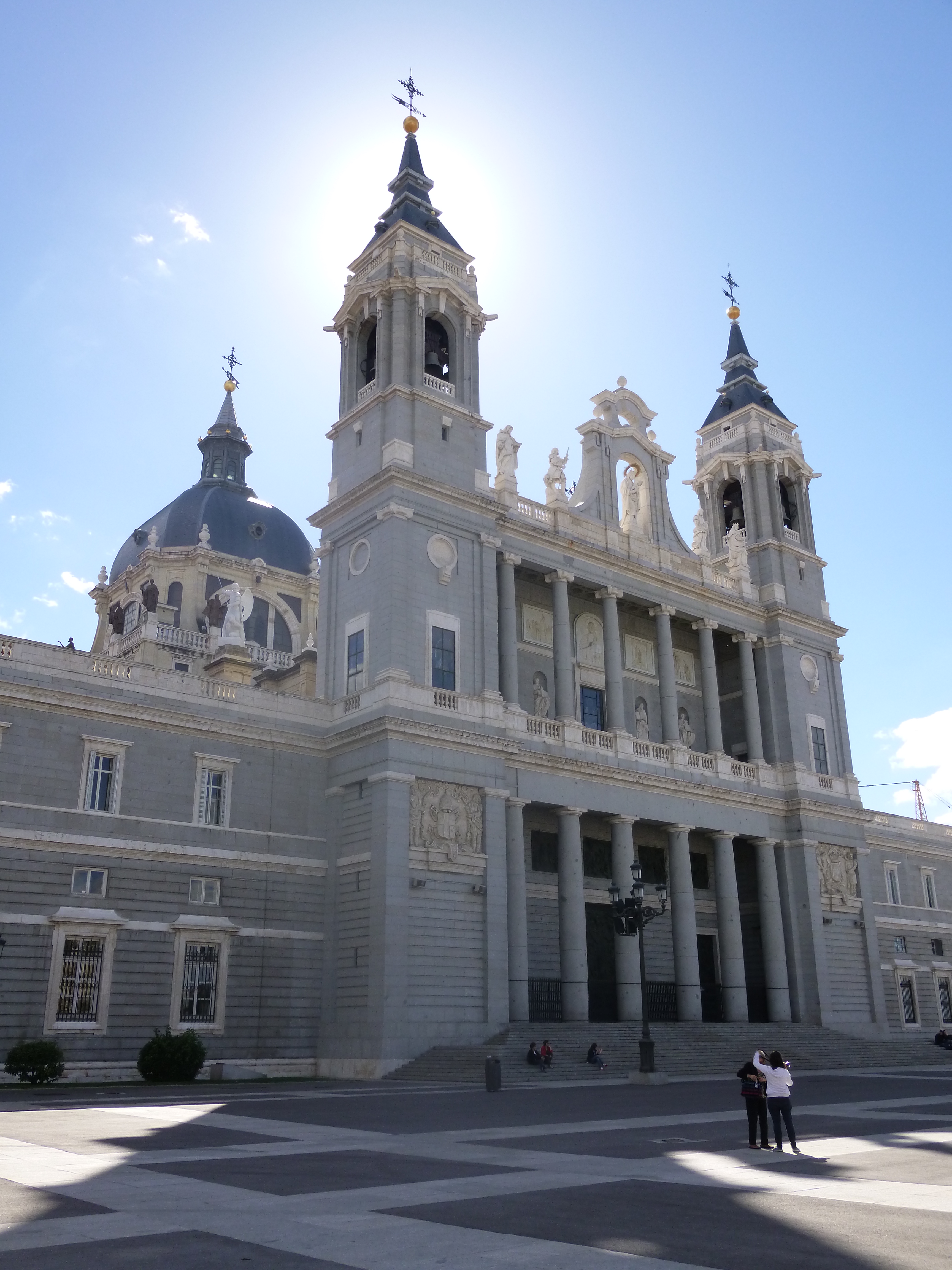 The rest of the trip brought more sight seeing. The most notable places I visited were the Parque de la Montana that contains the Temple of Debod, Plaza de España, and the Royal Palace of Madrid and Plaza de Oriente. There is quite a bit of green space in Madrid, making it a great place to raise children, but when you are in the centre of the city, all the concrete can become tiring. By the time I reached the temple I had already covered a lot of distance that day so it was nice to enter some green space and let my mind relax. The Temple of Debod was a gift from the Egyptian government to Spain as a sign of appreciation for Spain’s help with preserving temples in Egypt. It has stood in the park since 1968. The park is two tiered, with the temple and some landscaping on the top tier and then bike trails on the bottom tier. All the leaves were still green in late September making the park really enjoyable to walk through. After walking through this park a bit I headed to Plaza de España to see square and the monument erected there. The park is laid out very nicely actually, there is a lot of shrubs and trees with a large fountain. The monument honours Miguel de Cervantes Saavedra, the author of the novel Don Quixote. The monument even has statues depicting some of the main characters of his book. My father called me while I was here and I have to admit that it is really nice when your family surprises you with a phone call, especially when you are alone for so long. While on the phone catching up with my Dad, I walked over to the Royal Palace. Because this landmark is so close to Puerta del Sol there were obviously many tourists around. Well the palace is gorgeous, and the church beside it is even more so. The park in front called Plaza de Oriente is really well laid out and has plenty of space to sit and enjoy the surroundings.